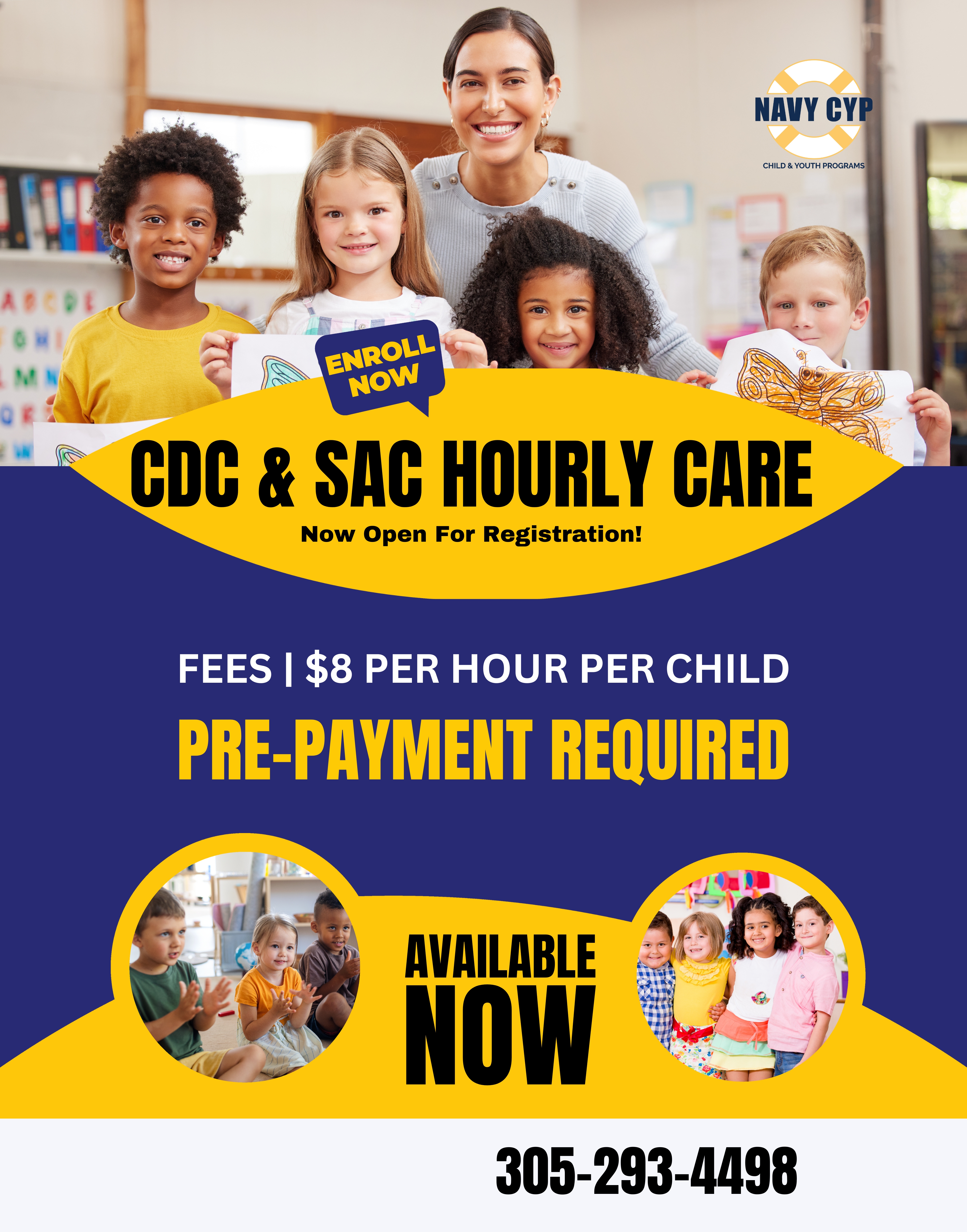School Age Care and Child Development Center HOURLY CARE available. https://myffr.navyaims.com/cyms.html