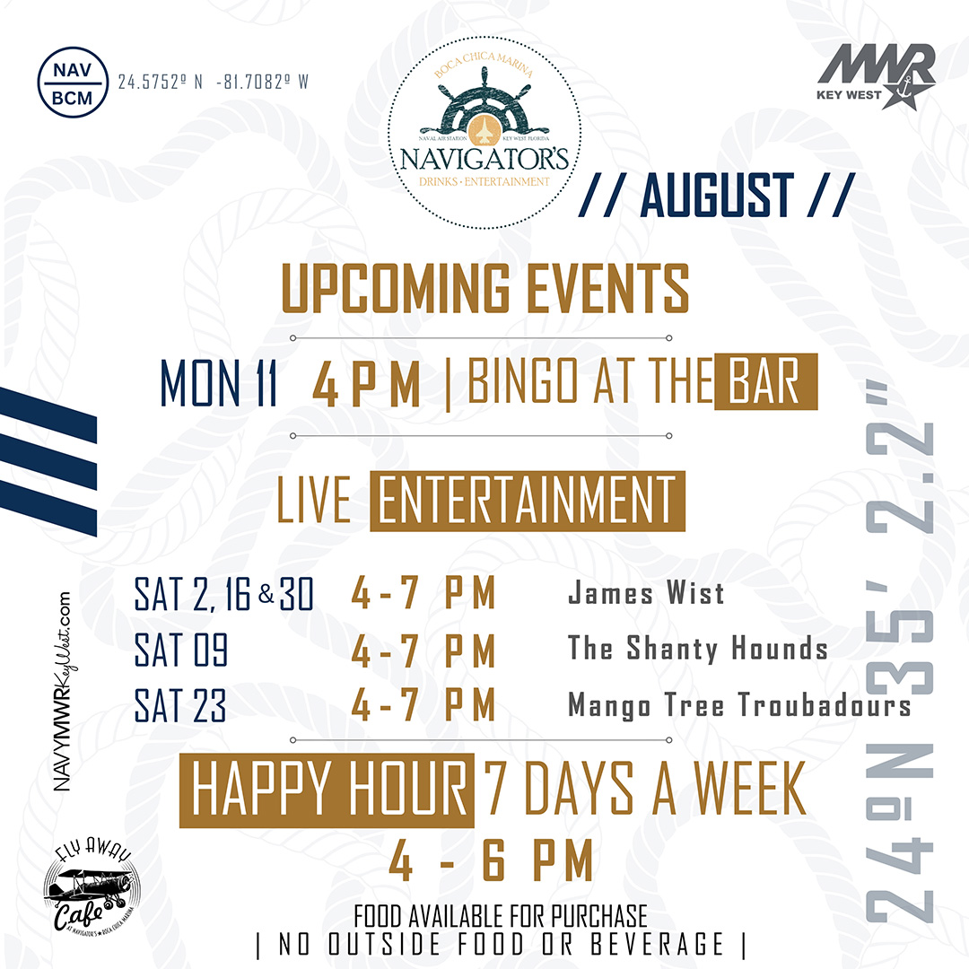 Navigator’s Bar is a full-service bar located at the Boca Chica Marina along with Fly Away Cafe. There is indoor and outdoor seating as well as tiki huts on the beach located directly outside the restaurant and bar. The tiki huts are available to rent along with kayaks and paddleboards. For more information or to arrange a party, please reach out via email.